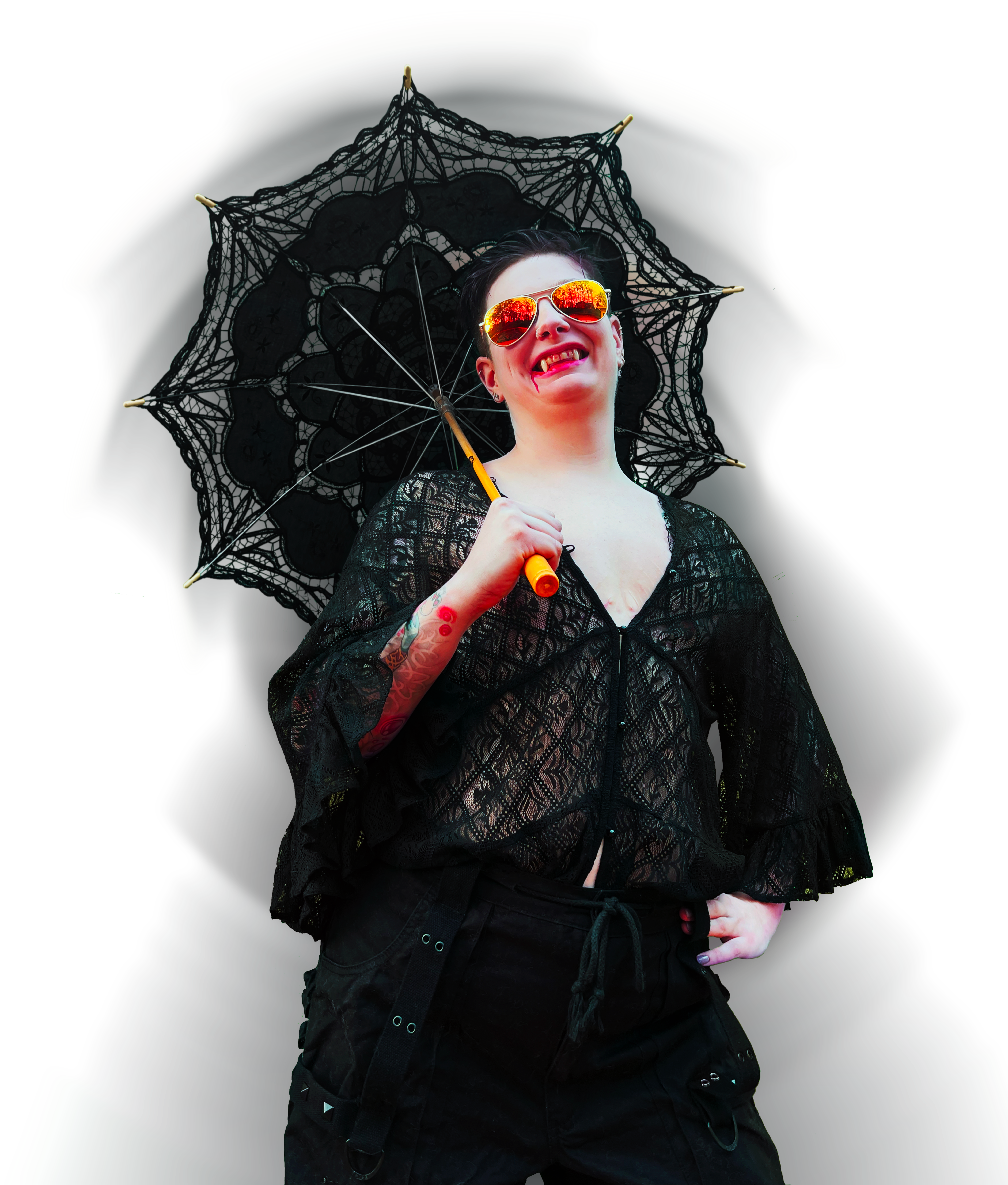 Vampires have pale or ashy skin and fangs. Some have pointed ears and long, claw-like nails. In order to avoid taking damage and other ill effects during the daylight hours, vampires must cover at least 70% of their exposed skin, wear sunscreen (most tend towards caking it on at high SPF), and sunglasses. Most will also wear some kind of hat or visor. Many carry around parasols to block out the sun. Unfortunately for Vampires, cloud cover does not diminish the sun’s effects as the UV radiation does penetrate the clouds.